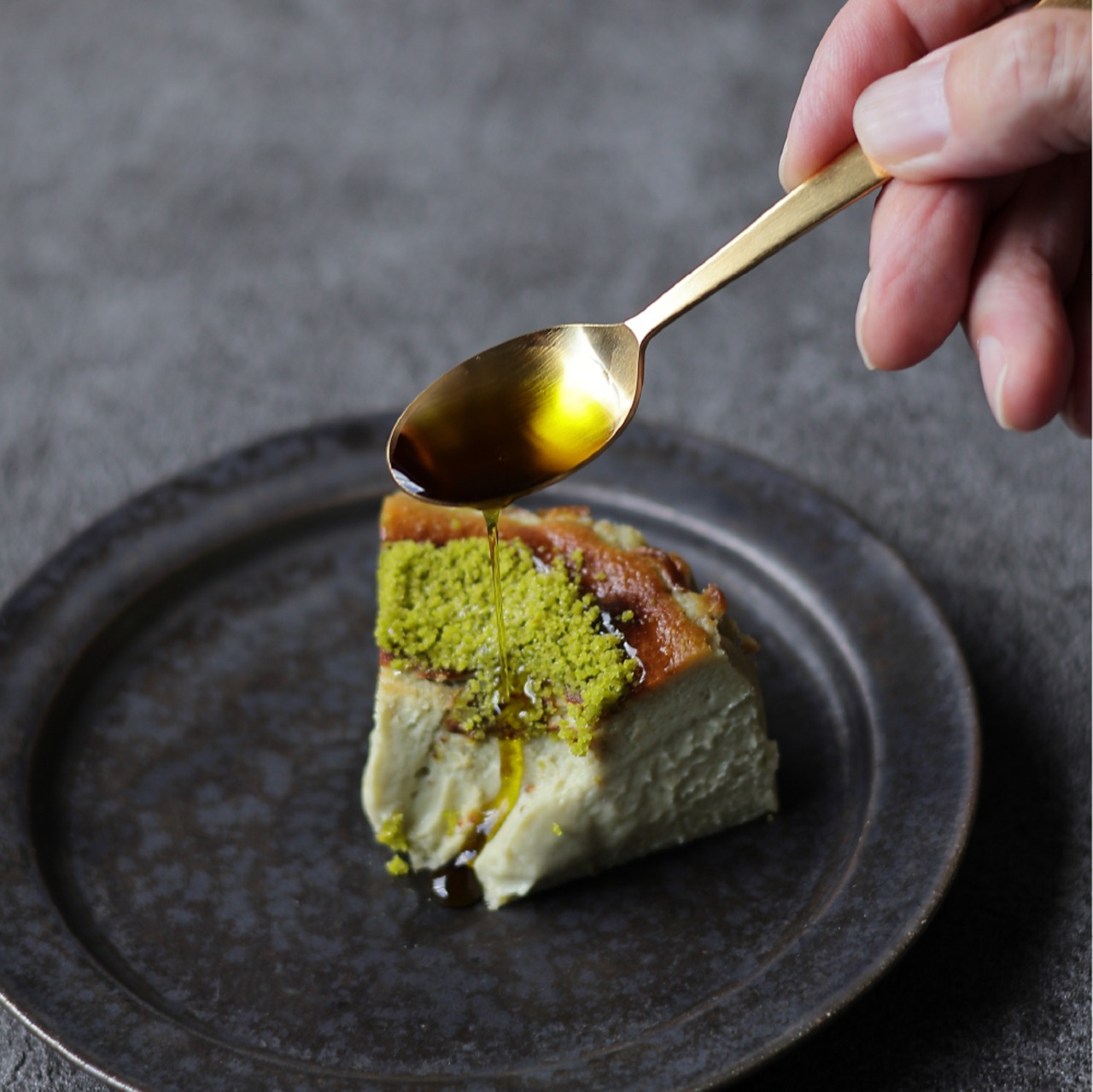世界最高峰、ブロンテ産ピスタチオの芳醇な香りと、濃厚なバスクチーズが溶け合う絶妙なバランス。